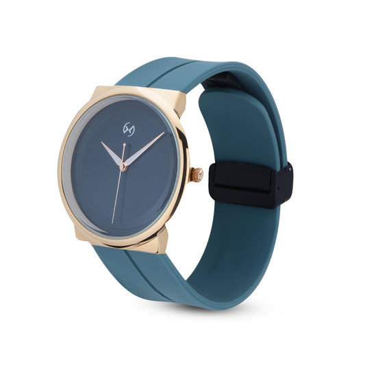 Casual grey dial watch with magnetic closure in grey case with blue strap
