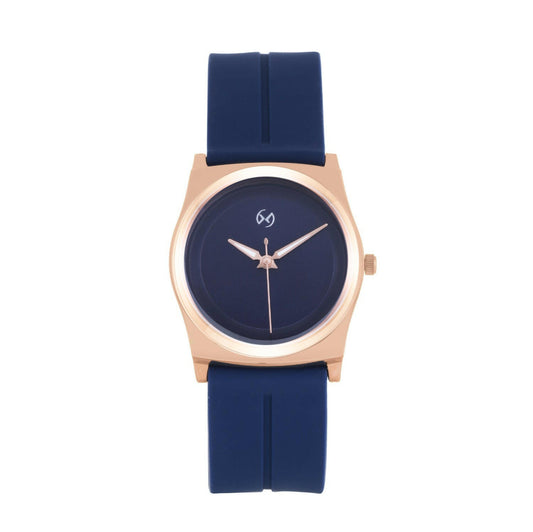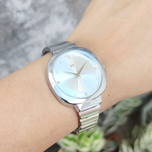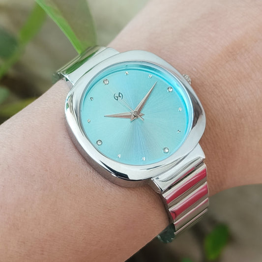 Shiny blue dial watch with rectangular link chain in steel perfect for office and daily wear