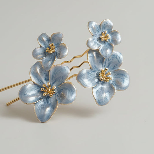 Super pretty enamel floral earrings with real detailing for women in pastel blue