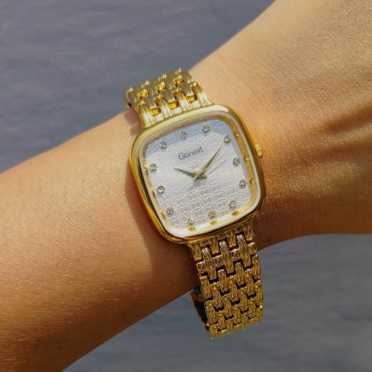 Minimalist and trendy gold rectangular link chain watch perfect for office and daily wear