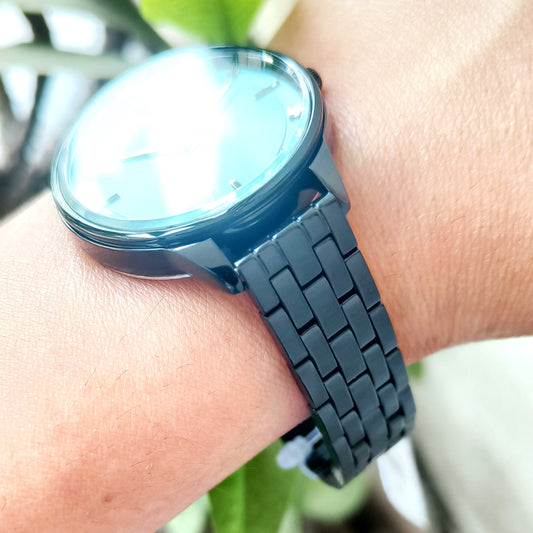 Trending soft chain black watch with sky blue dial in matte finish
