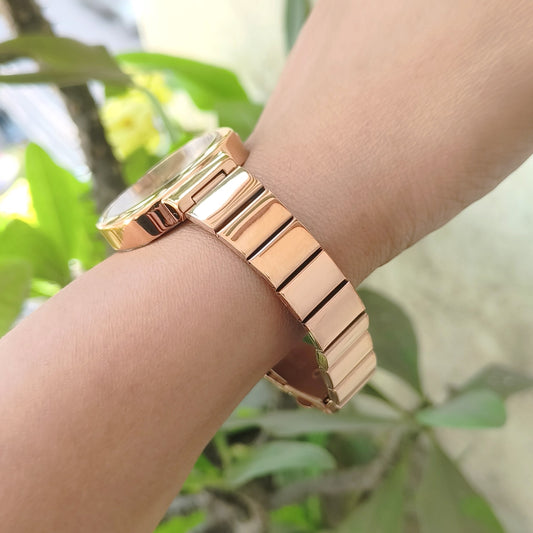 Minimalist and trendy rose gold dial watch with rectangular link chain perfect for office and daily wear