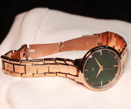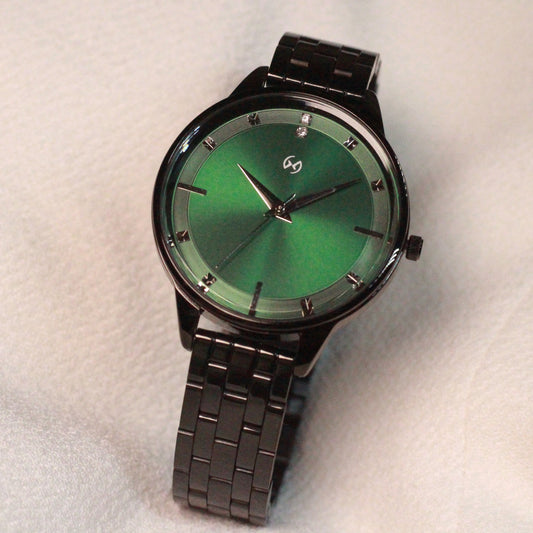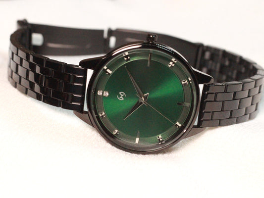 Deep green dial watch with 5 link black chain perfect for office and daily wear