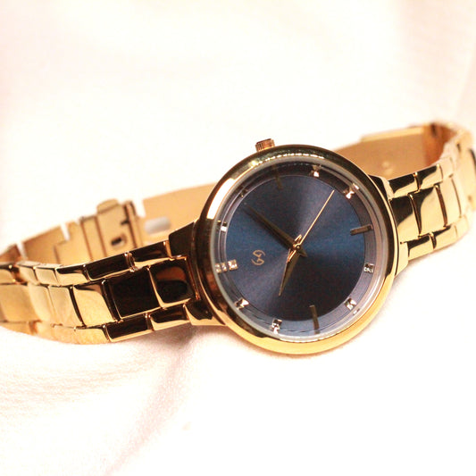 Shiny blue dial watch with rectangular link chain in steel perfect for office and daily wear