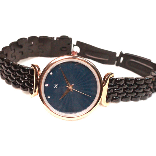 Trending soft chain black watch with deep black dial in rose gold case and European style chain