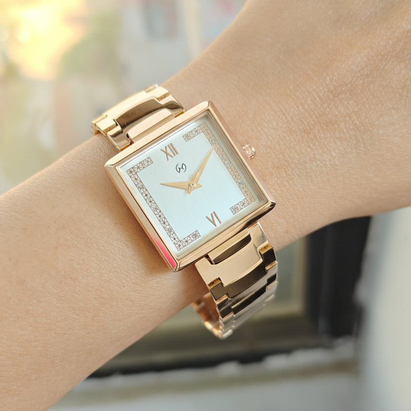 Women's white square Watch with Diamond-Set Numerals and u shape chain for luxurious feel